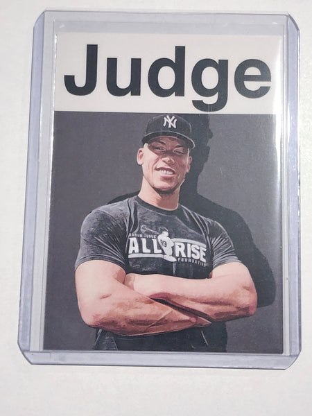The card features a beautifully detailed depiction of Aaron Judge. The artist's meticulous attention to detail and vibrant color palette make this card a treasure for any serious Baseball card collector or fan of Aaron Judge.