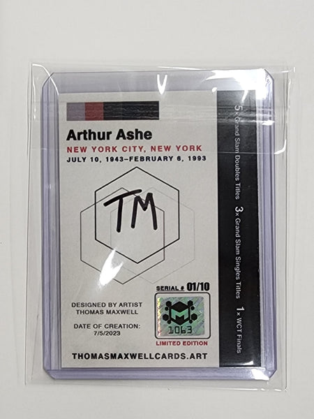 We’re excited to offer this exclusive Arthur Ashe Limited Edition Art Card. This unique Tennis Art Card numbered 1/10, showcases Arthur Ashe and is hand-signed by the artist and affixed with a numbered hologram adding an extra layer of authenticity.
