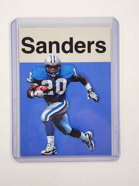 The card features a beautifully detailed depiction of Barry Sanders in action. The artist's meticulous attention to detail and vibrant color palette make this card a treasure for any serious Football sports card collector or fan of Barry Sanders.