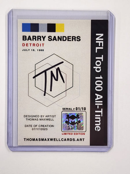 Barry Sanders Football Art Card - Artist Signed 1/10