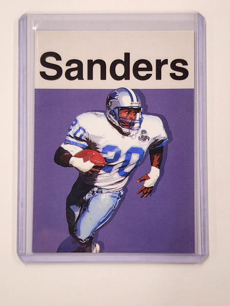 The card features a beautifully detailed depiction of Barry Sanders in action. The artist's meticulous attention to detail and vibrant color palette make this card a treasure for any serious Football sports card collector or fan of Barry Sanders.