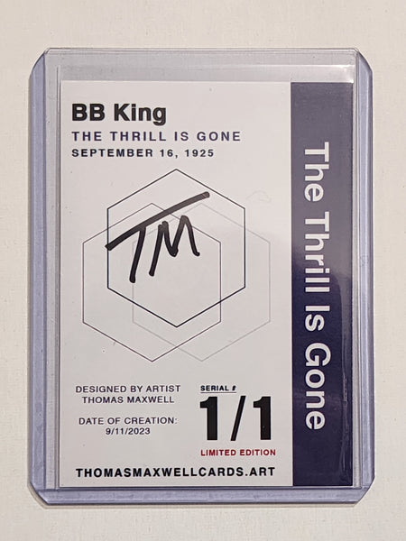 We’re excited to offer this exclusive BB King Limited Edition Refractor Art Card. This unique Music Art Card numbered 1/1, showcases BB King and is hand-signed by the artist and affixed with a numbered hologram adding an extra layer of authenticity.