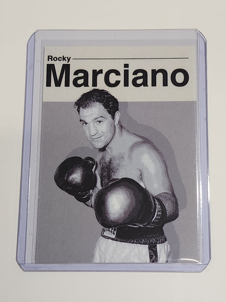 The card features a beautifully detailed depiction of Rocky Marciano . The artist's meticulous attention to detail and vibrant color palette make this card a treasure for any serious Boxing card collector or fan of Rocky Marciano.