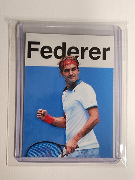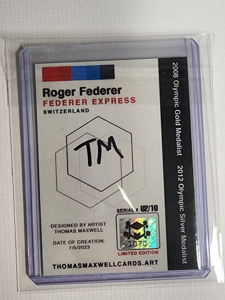 The card features a beautifully detailed depiction of Roger Federer in action. The artist's meticulous attention to detail and vibrant color palette make this card a treasure for any serious Tennis sports card collector or fan of Roger Federer.