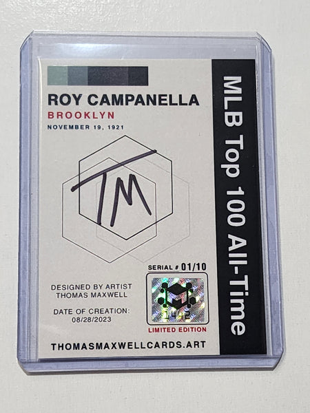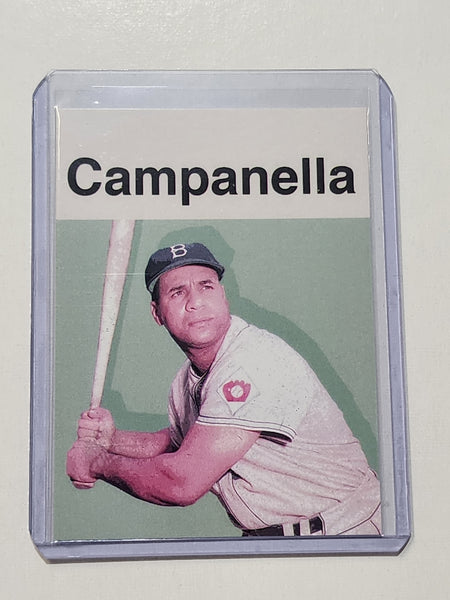The card features a beautifully detailed depiction of Roy Campanella in action. The artist's meticulous attention to detail and vibrant color palette make this card a treasure for any serious Baseball sports card collector or fan of Roy Campanella.