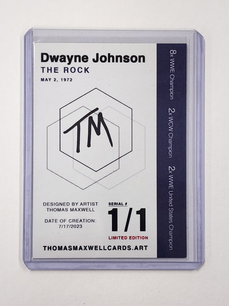 We’re excited to offer this exclusive The Rock Limited Edition Refractor Art Card. This unique Wrestling Art Card numbered 1/1, showcases The Rock and is hand-signed by the artist and affixed with a numbered hologram adding an extra layer of authenticity.