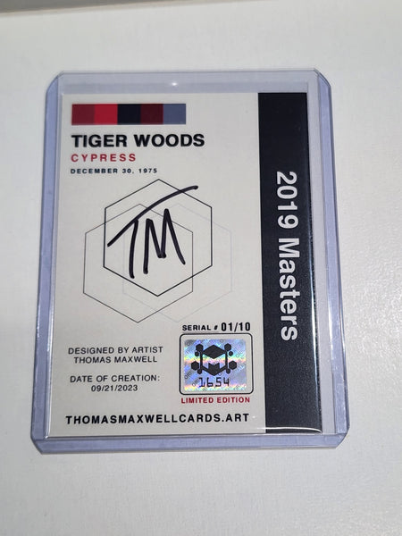 Tiger Woods Artist Signed Golf Art Card 1/10