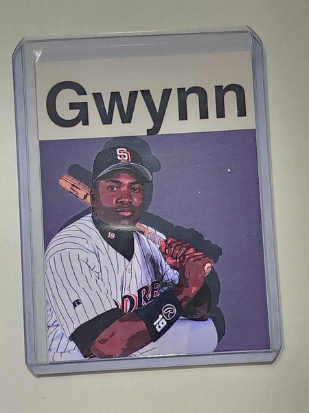 The card features a beautifully detailed depiction of Tony Gwynn in action. The artist's meticulous attention to detail and vibrant color palette make this card a treasure for any serious Baseball sports card collector or fan of Tony Gwynn.