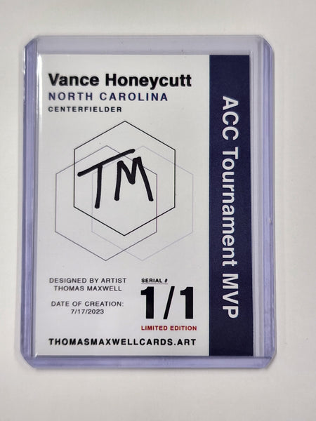 Seize this unique opportunity to own a piece of North Carolina history with this limited edition, artist-signed Vance Honeycutt Refractor card. A brilliant addition to your collection or a valuable investment in memorabilia.