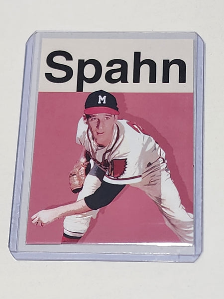 The card features a beautifully detailed depiction of Warren Spahn in action. The artist's meticulous attention to detail and vibrant color palette make this card a treasure for any serious Baseball sports card collector or fan of Warren Spahn.