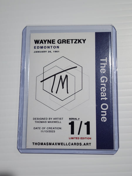 We’re excited to offer this exclusive Wayne Gretzky Limited Edition Refractor Art Card. This unique Hockey Art Card numbered 1/1, showcases Wayne Gretzky and is hand-signed by the artist and affixed with a numbered hologram adding an extra layer of authenticity.