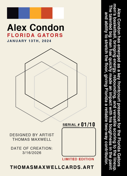 Alex Condon Florida Gators Artist Signed Basketball Art Card 1/10