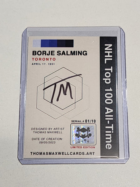 Borje Salming Artist Signed Hockey Art Card 1/10