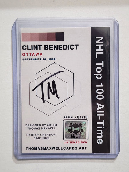 Clint Benedict Artist Signed Hockey Art Card 1/10