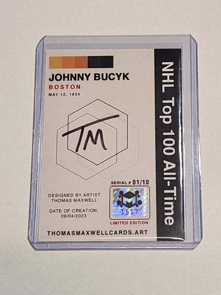 Johnny Bucyk Artist Signed Hockey Art Card 1/10