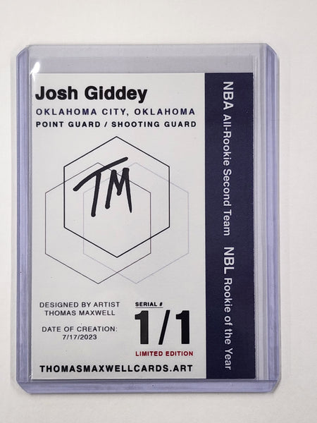 Josh Giddey Artist Signed Oklahoma City Thunder Refractor Art Card 1/1