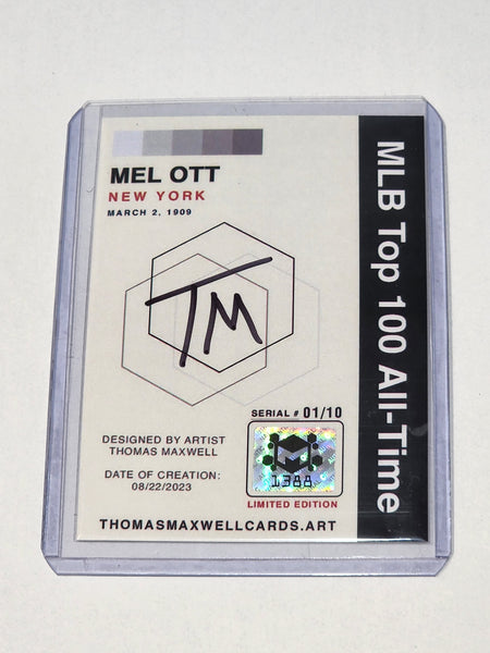 Mel Ott Artist Signed Baseball Art Card 1/10