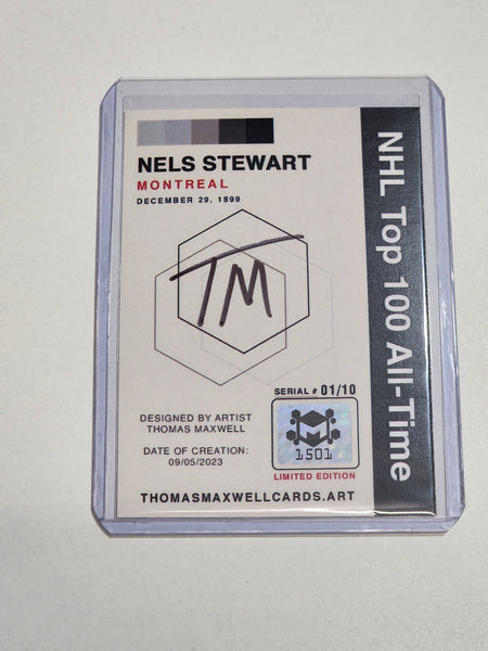 Nels Stewart Artist Signed Hockey Art Card 1/10