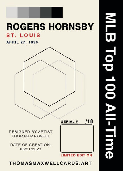 Rogers Hornsby Artist Signed Baseball Art Card 2/10