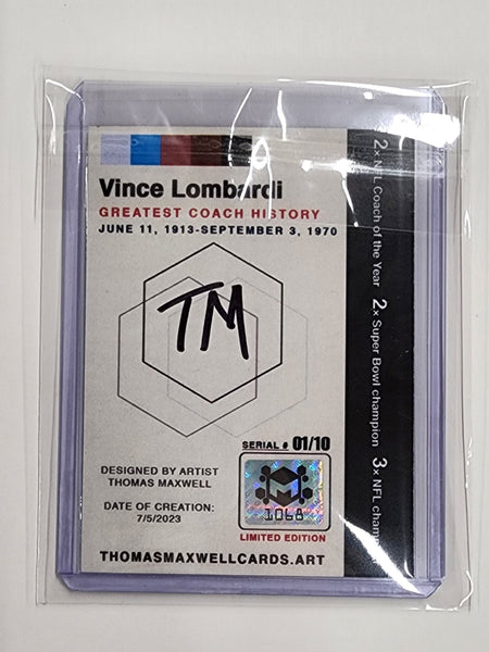 Vince Lombardi Artist Signed Football Art Card 1/10