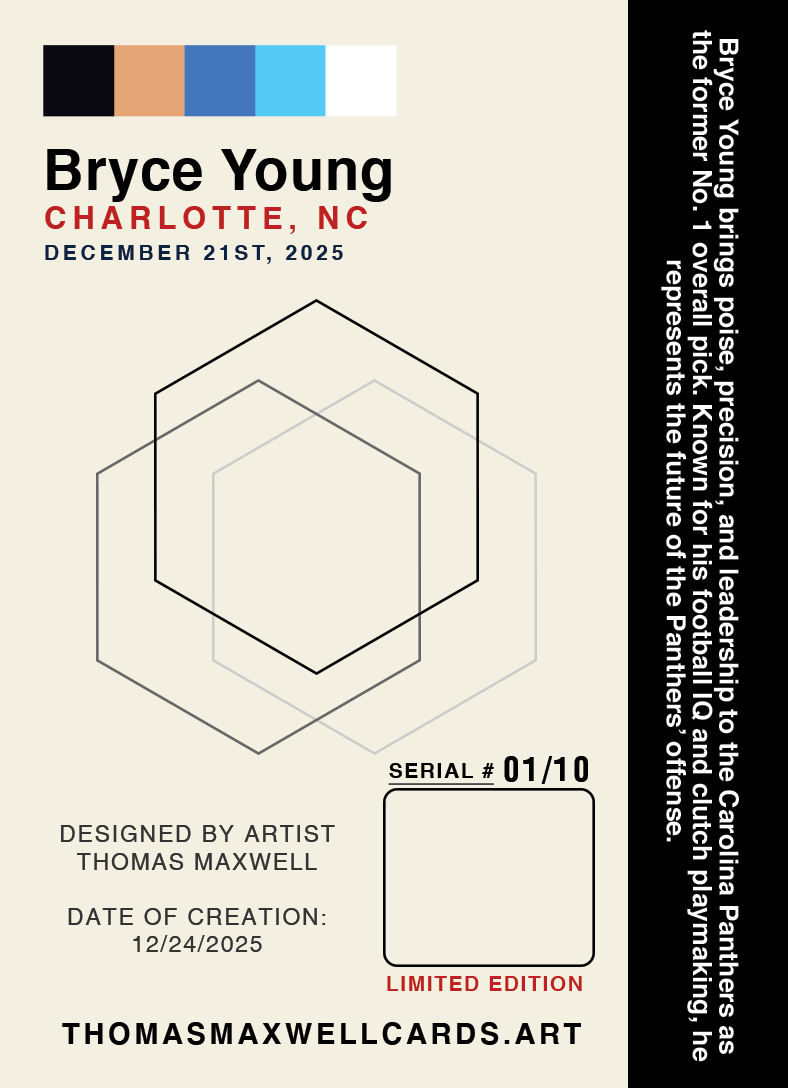 Bryce Young Artist Signed Panthers Football Art Card 1/10