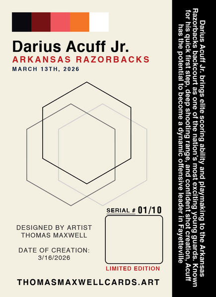 Darius Acuff Jr. Arkansas Razorbacks Artist Signed Basketball Art Card 1/10