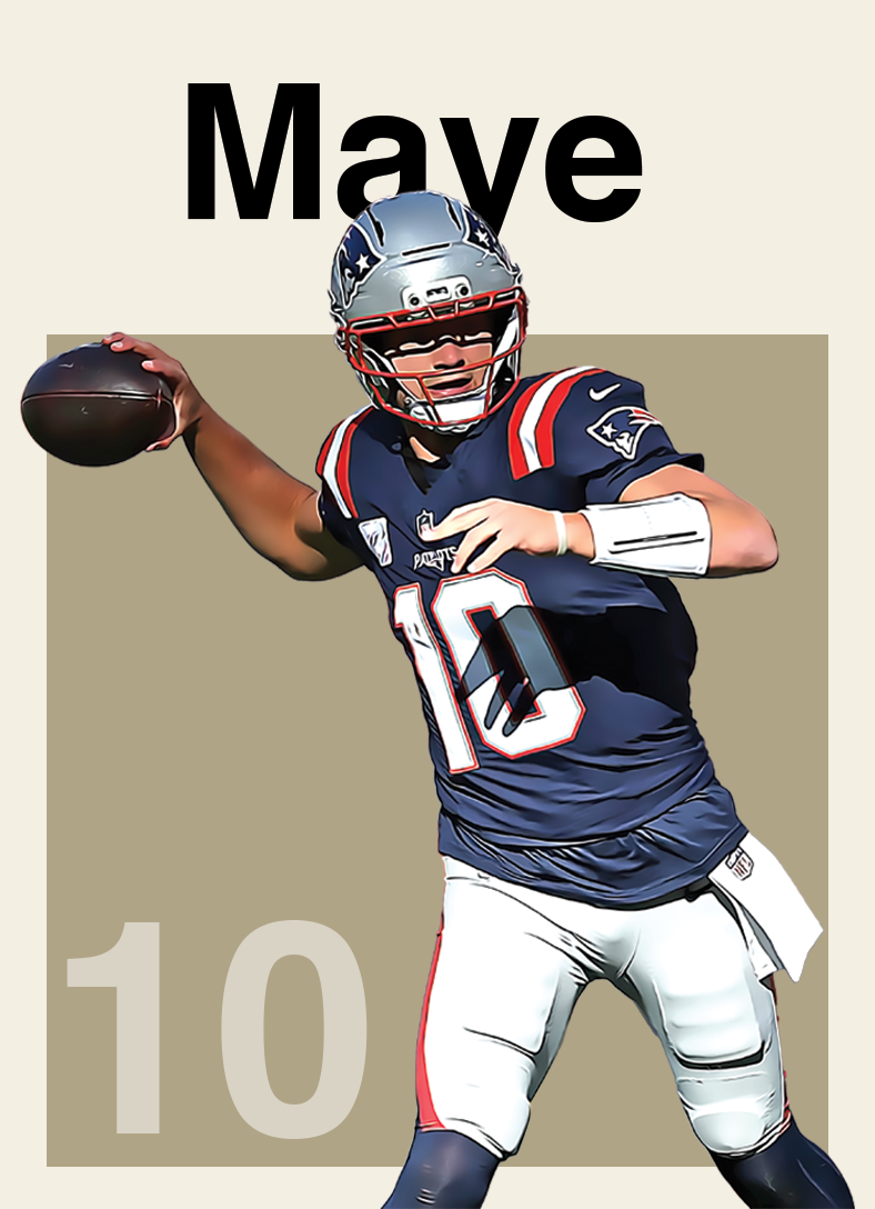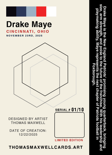 Drake Maye Artist Signed Patriots Football Art Card 1/10