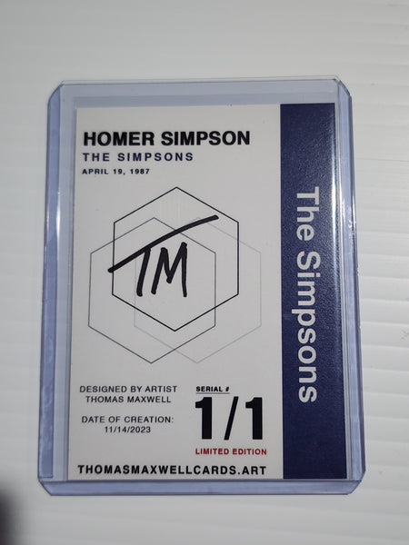 We’re excited to offer this exclusive Homer Simpson Limited Edition Refractor Art Card. This unique The Simpsons Art Card numbered 1/1, showcases Homer Simpson and is hand-signed by the artist and affixed with a numbered hologram adding an extra layer of authenticity.