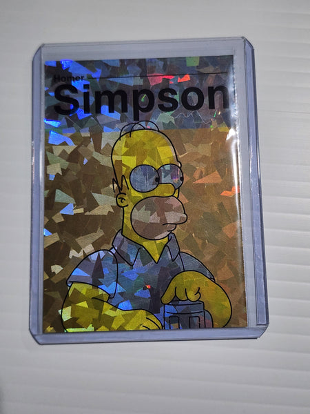 The card features a beautifully detailed depiction of Homer Simpson in action. The artist's meticulous attention to detail and vibrant color palette laid over the holographic refractor pattern make this card a treasure for any serious The Simpsons sports card collector or fan of Homer Simpson.