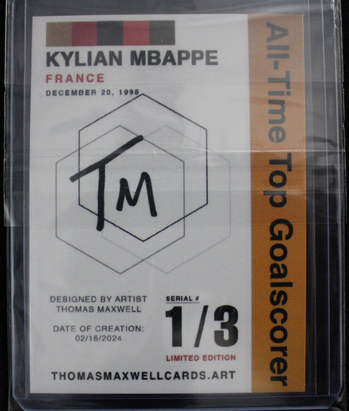 Kylian Mbappe Artist Signed France National Football Team Refractor Art Card 1/3