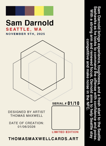 Sam Darnold Artist Signed Seattle Seahawks Football Art Card 1/10